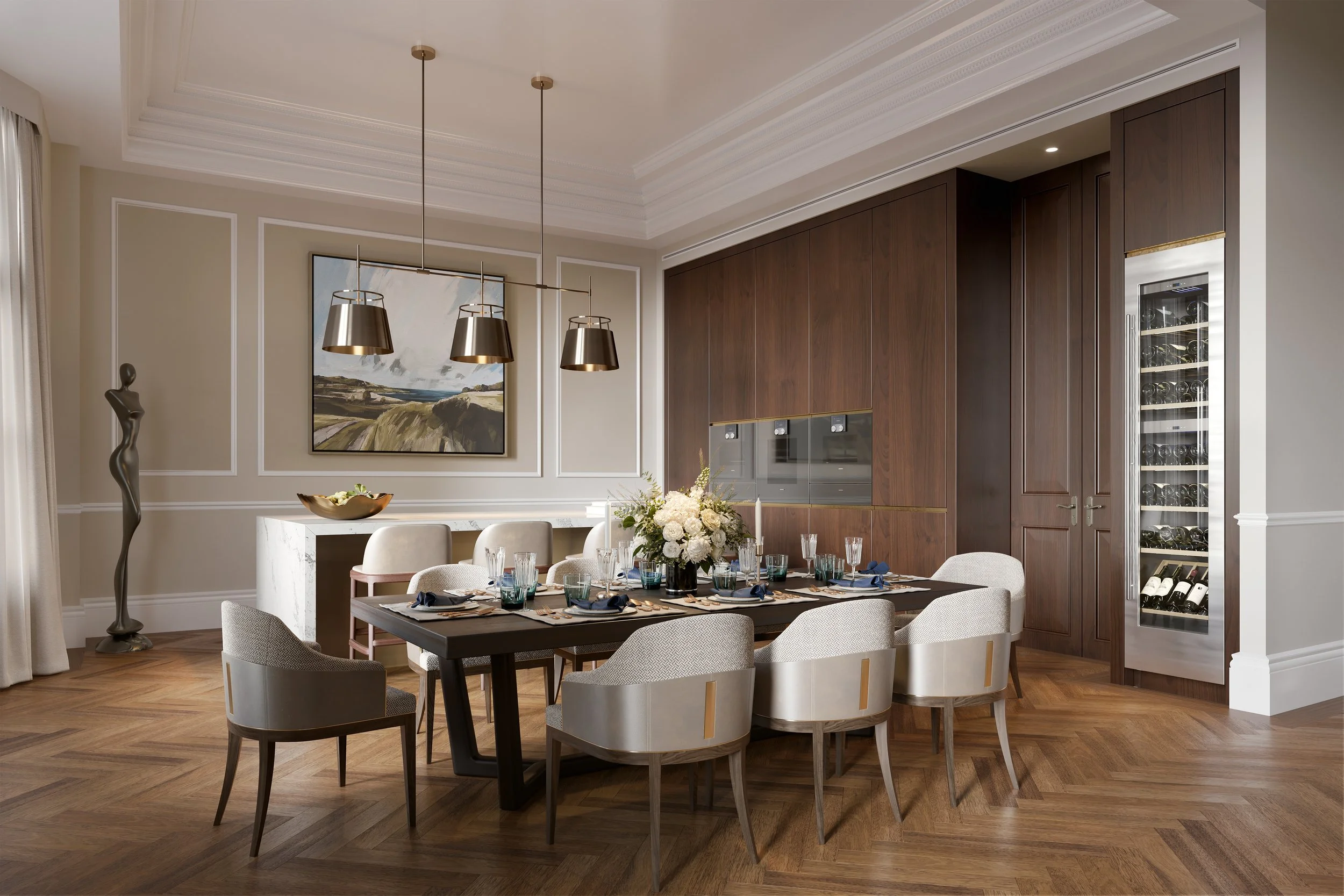 Upon entering the apartment, residents and guests are met with high ceilings and spacious corridors. The intricate interior design entwined with classic contemporary pieces create a traditional feel that is continued throughout the property.